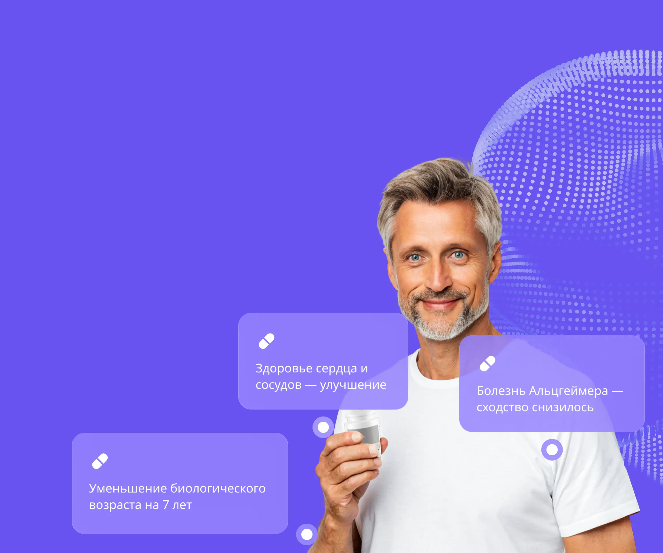 Управляйте своим биологическим возрастом изнутри. Пройдите программу и получите индивидуально подобранные биодобавки для коррекции возраста микробиоты