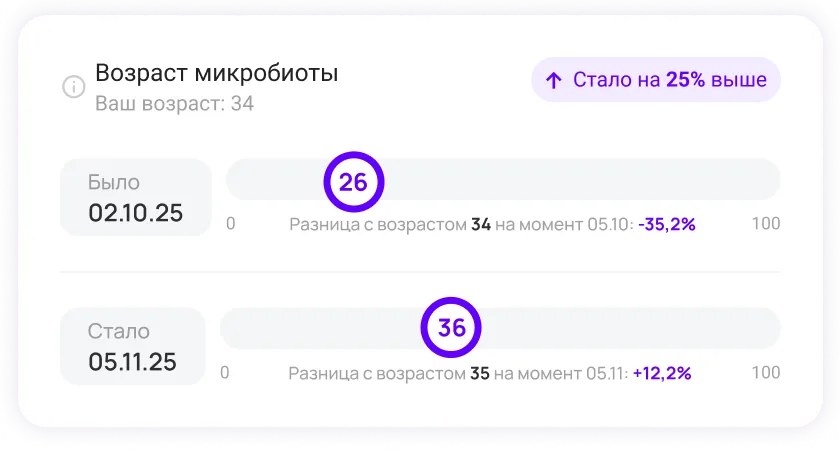 - сходство вашего профиля с микробиотой людей с заболеваниями